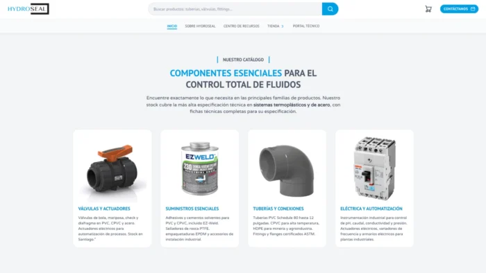 Hydroseal es una empresa chilena especializada en suministro industrial, control de fluidos y manejo de materiales termoplásticos. Llevan años construyendo autoridad en su sector, tienen buen posicionamiento en Google, un blog activo y clientes que los buscan por nombre. El problema no era visibilidad: era infraestructura.