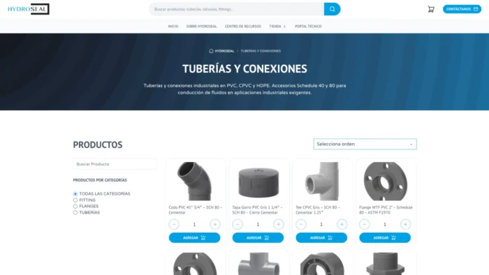 • Arquitectura y diseño: Plantilla a medida que integra la identidad corporativa con la tienda, creando una experiencia fluida donde el contenido técnico lleva naturalmente hacia la cotización. Sin fricciones, sin saltos entre dominios.